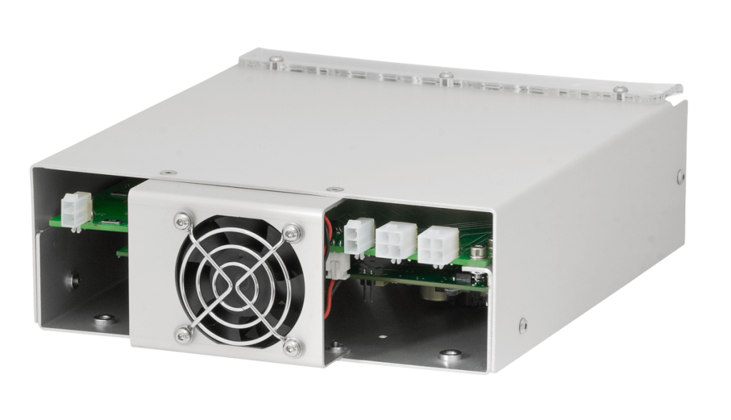 Модуль включает в себя тиристор, его драйвер, цепи защиты, модуль дежурной дуги, дополненный цепью поджига для последовательного и внешнего поджига лампы, и плату управления. Кроме того, он содержит вентилятор для активного охлаждения.