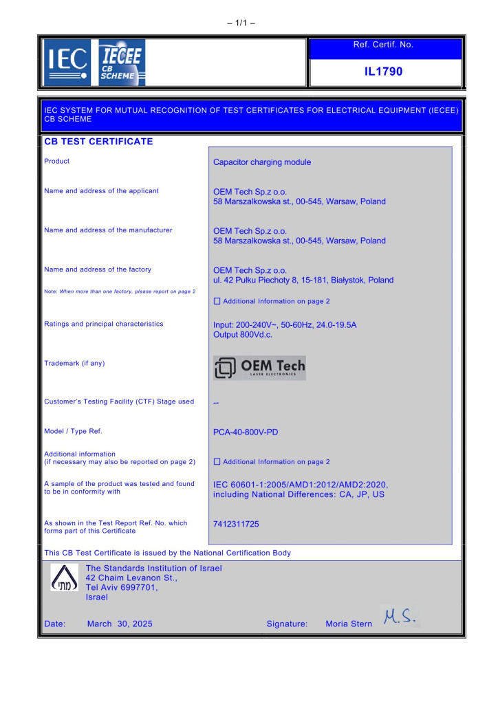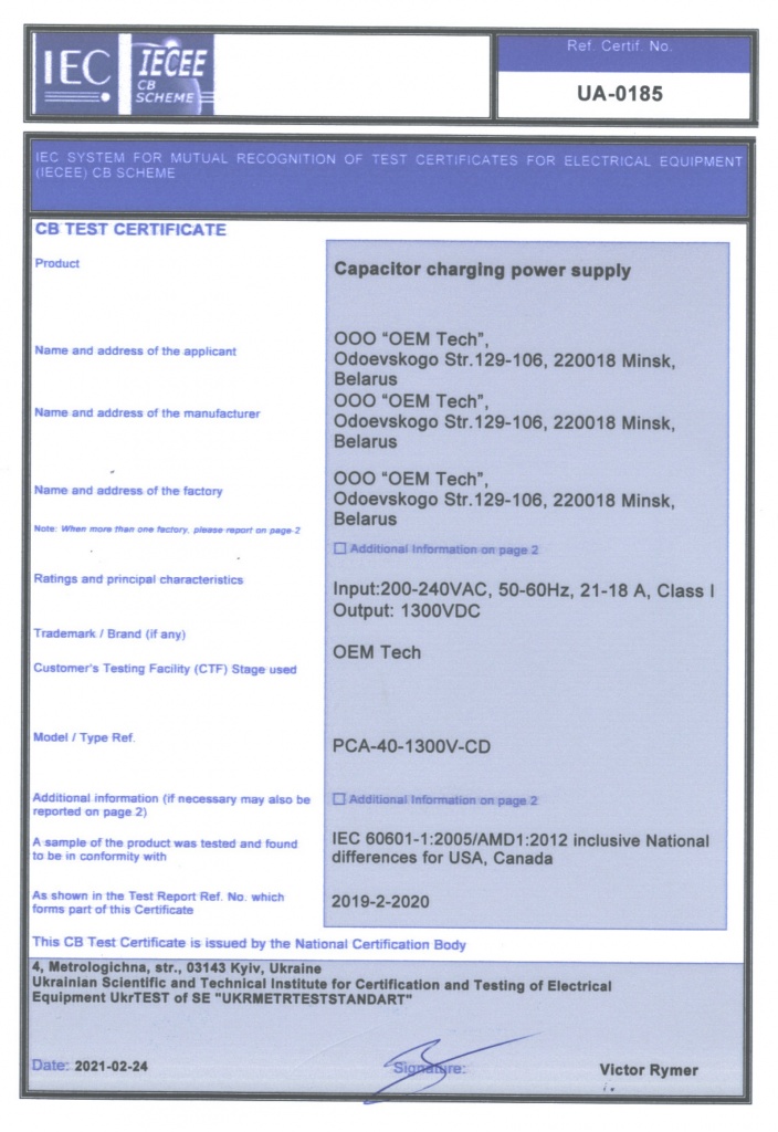 PCA-25-350V-PD - 1 шт // предлагаемое напряжение 350 В, однако можно рассматривать и другие версии. Сертификат модели 1